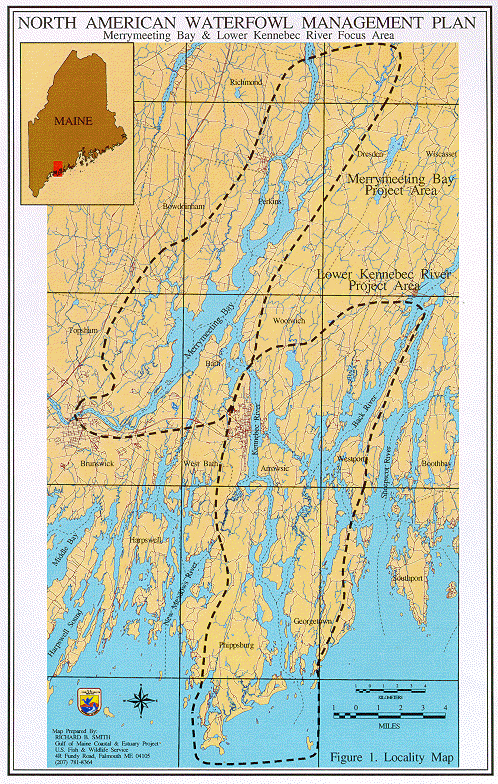 The MWPC established the Merrymeeting Bay and Lower Kennebec River as one of five Focus Areas in Maine for the Atlantic Coast Joint Venture. Focus Areas are defined by NAWMP as wetlands and associated upland habitats within the joint venture area that are high priority wintering, migration, or production habitats for black ducks and other waterfowl.