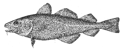 Figure 86.—Cod (Gadus callarias), Eastport, Maine. From Goode. Drawing by H. L. Todd.