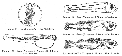 As the successful propagation of any fish depends as much upon the incubation of its eggs as on its spawning, we should note that incubation proceeds normally, and that the resultant larvae are strong and active over the whole range of temperature just outlined, that is, from about 38° to about 48° as proved by experience in the Gloucester hatchery.